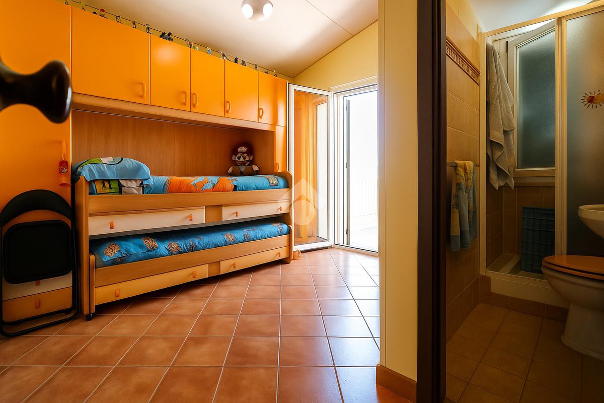 COLLE ROMITO- In contesto residenziale. Proponiamo la vendita di una villetta disposta su due livelli. L'immobile è composto da soggiorno con angolo cottura, camera matrimoniale e bagno con doccia al piano terra. Nel 1° piano troviamo una camera con bagno con doccia, cameretta e due balconi. La soluzione è dotata di riscaldamento autonomo, porta blindata, condizionatori, infissi in alluminio con vetri doppi, zanzariere ed antifurto. Completano la proprietà un comodo patio ed un giardino angolare di 180 mq con accesso carrabile e barbecue in muratura.